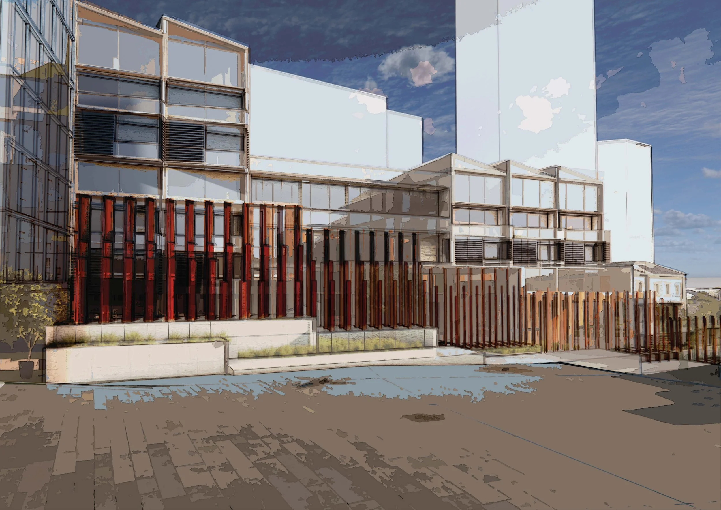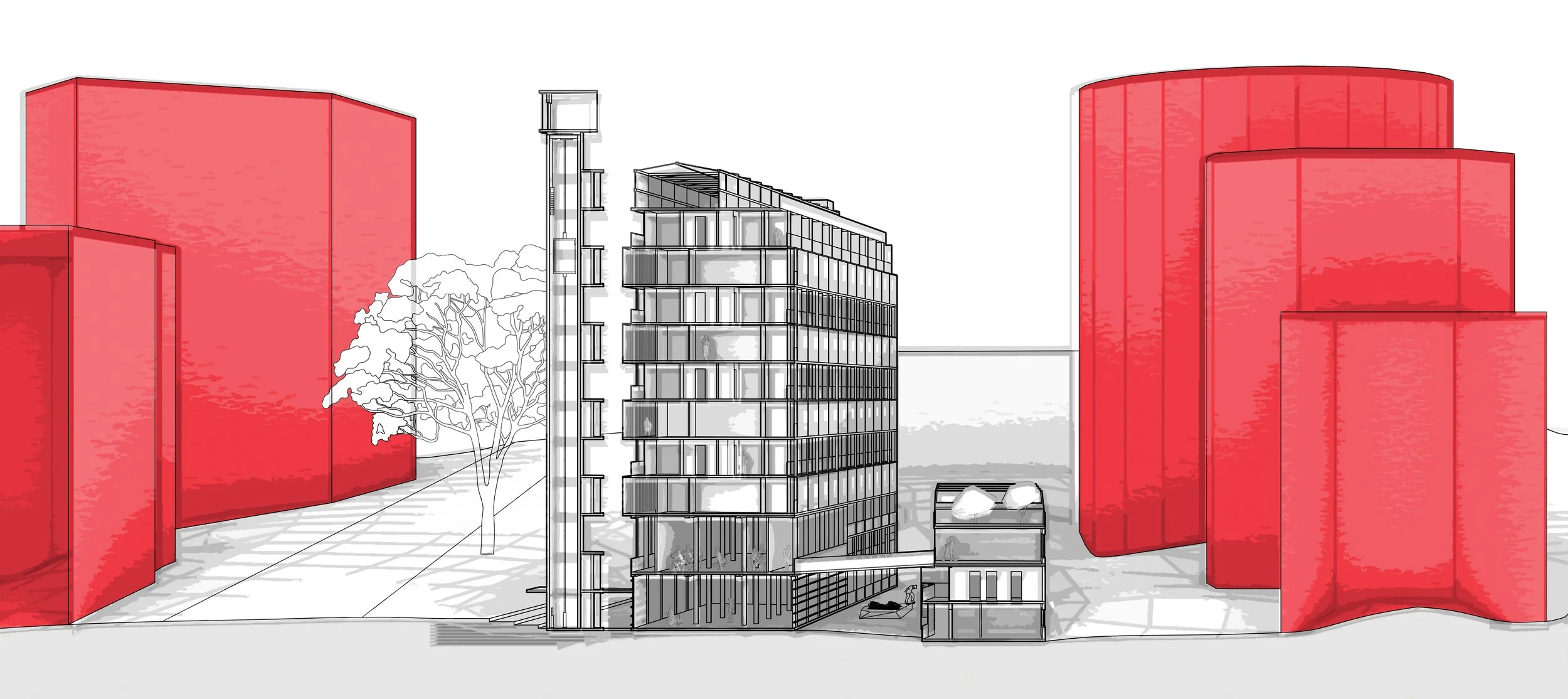 Architecture PostgraduateYear 2 // Semester 2Upper Greys Ave Sustainability, Refurbishment, Passive, HeritageWhile there are several interven tion to offset environmental interactions with the site, this project provides a opportunity to explore a alternative way of living for families which in the long-term could have a great affect on Auckland where house prices continue to increase. High density living is the future thus exploring alternatives to shift social mindset is important. Creating interventions like this aim to create a non-alienating experience for users who left suburban housing by enhancing those experiences they are used too within a new style of living This project will bring life to a otherwise gloomy site, creating communal experiences that will help younger generations in less fortunate families still enjoy apartment style living.